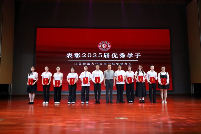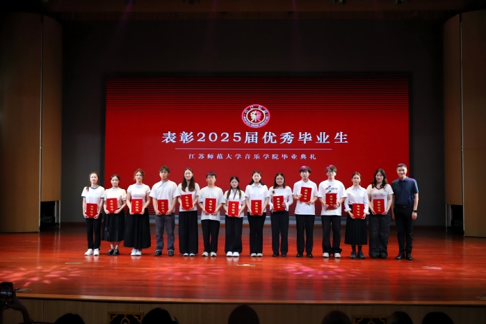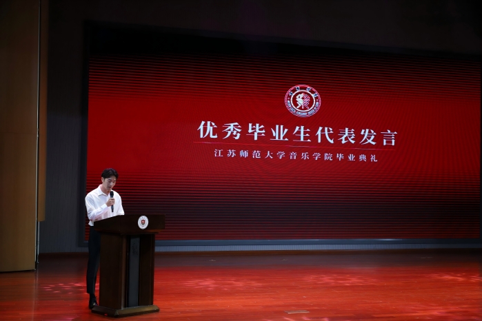 高书记为优秀毕业生颁发荣誉证书,优秀毕业生代表21音11班吴桐发表感言,表达了对学院老师的感恩和同学们的美好祝愿,传递奋进力量。