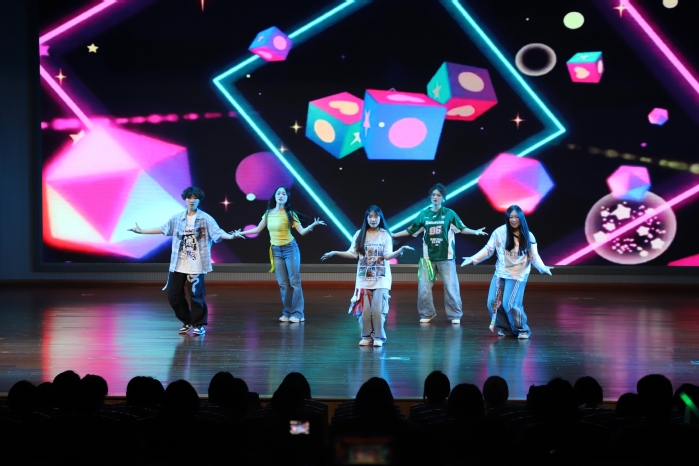 第二篇章:青春逐梦。舞蹈《How Sweet + Supernatural》融合多元风格,展现青春的热烈与自由;二胡合奏《赛马》以磅礴气势,诠释逐梦路上的拼搏;歌曲串烧《你好·我的未来式》串联成长片段,合唱《道别是一件难事》则轻诉离别不舍。